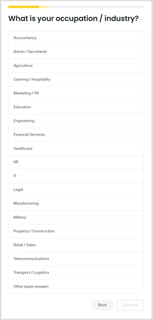 Choose the options that best reflect your current circumstances, then click “Continue” to proceed.