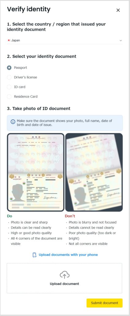To create your account, you’ll need to complete email and phone number verification. Additionally, you must prepare the required documents for identity and address verification. Having these documents ready in advance will ensure a smooth registration process.
