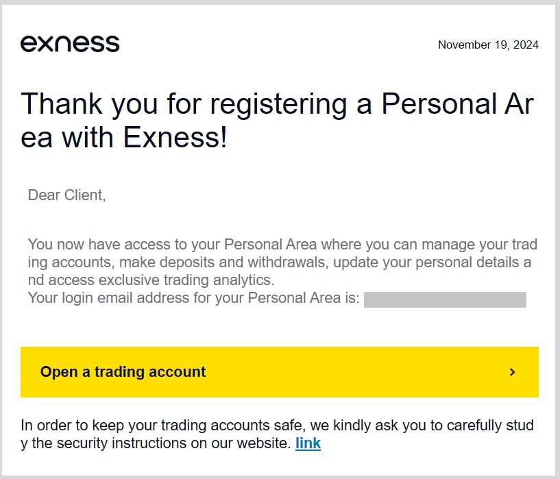 To complete your email verification, simply click on the “Open Trading Account” link in the email.