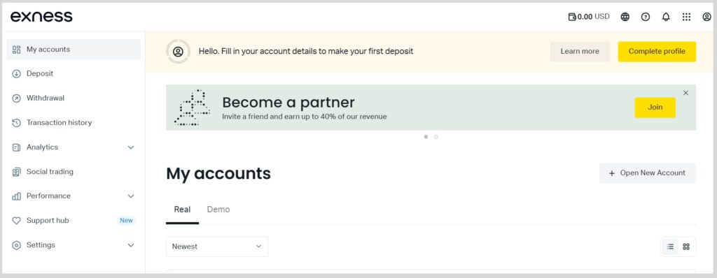 Opening an Exness Cashback account through Connect bridge tradnig is simple and secure. Follow the steps below to get started:
